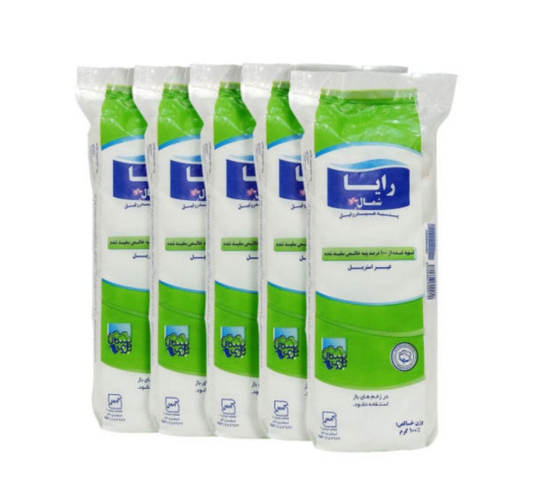 پنبه هیدروفیل رایا تهیه شده از الیاف مرغوب، 100% پنبه و کاملا بهداشتی میباشد.