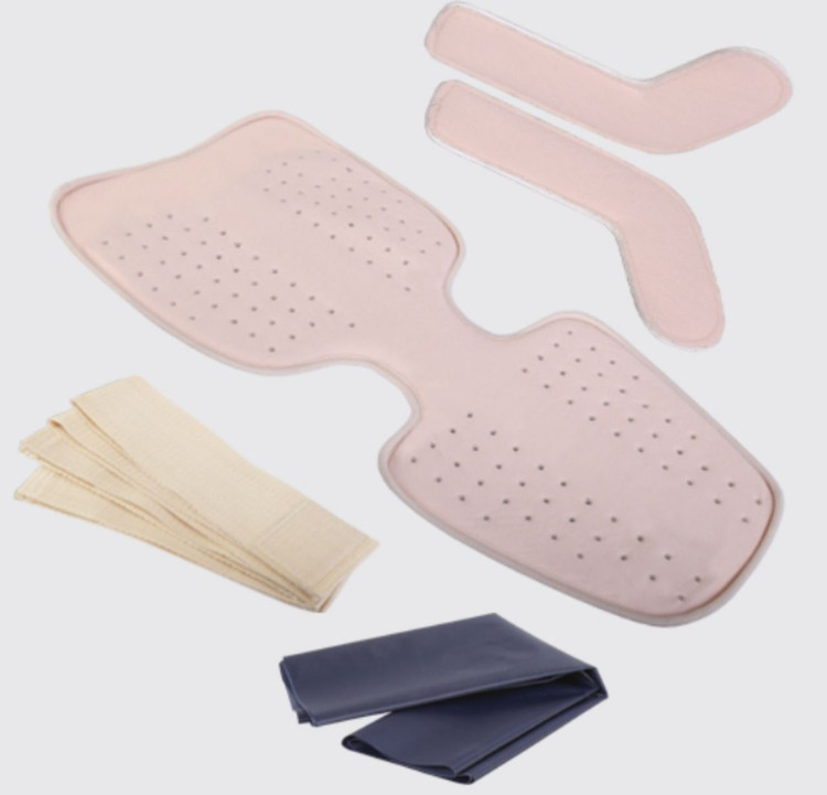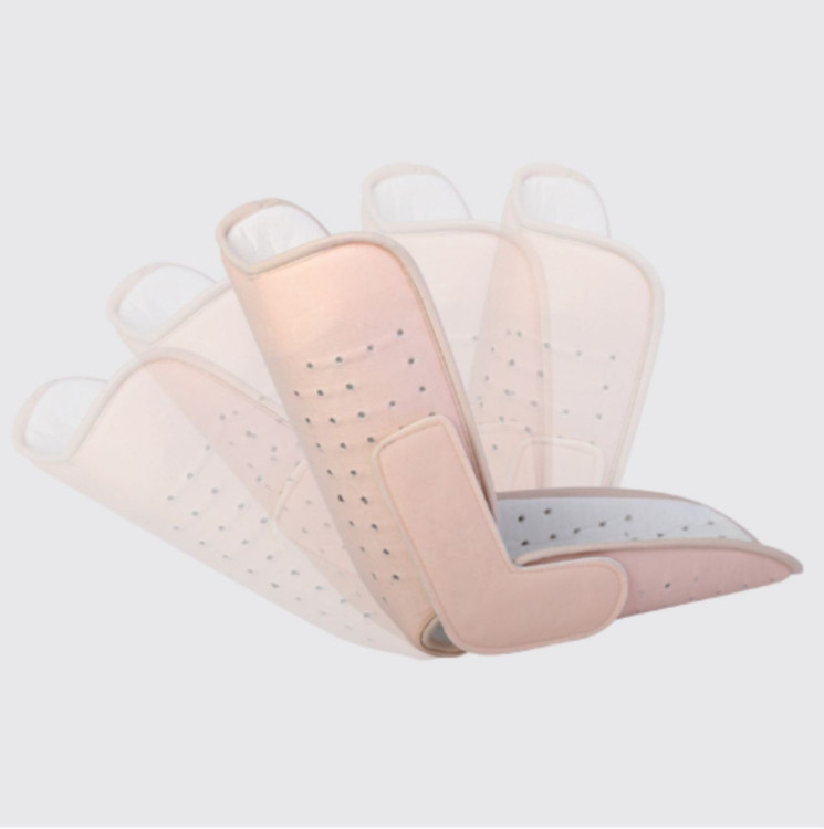 ابتدا آتل را به نحوی فرم دهید که پارچه سفید و ضد حساسیت در داخل آتل قرار گیرد طوری که بدن با این سطح در تماس باشد.