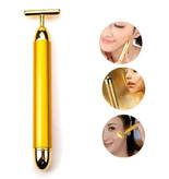 ماساژور صورت و ویبراتور انرژی بیوتی بار یک ماساژور صورت طلایی شکل T، انرژی فوری، لیفت سفت کننده محکم با روکش طلایی، 6000 تا 7000 ارتعاش در دقیقه، ماساژ ملایمی را روی پوست در هنگام پیچش انجام میدهد.