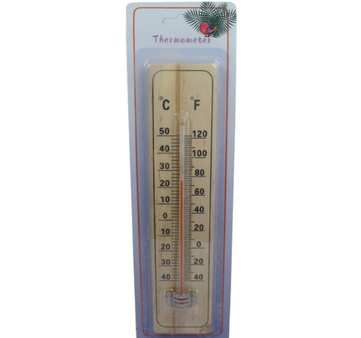 دماسنج چوبی ساده یکی ازساده ترین دما سنج های جیوه ای موجود می باشد که مناسب منزل وسرکار میباشد،این مدل دماسنج به راحتی برروی دیوار منزل ویا محیط سرکار نصب شده ودما ی محیط از-40 درجه تا+50 درجه رانشان میدهد،