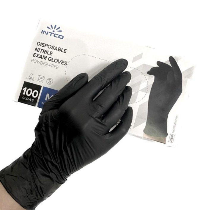 در هر جعبه از دستکش نیتریل مشکی اینتکو 100 عدد دستکش وجود دارد.