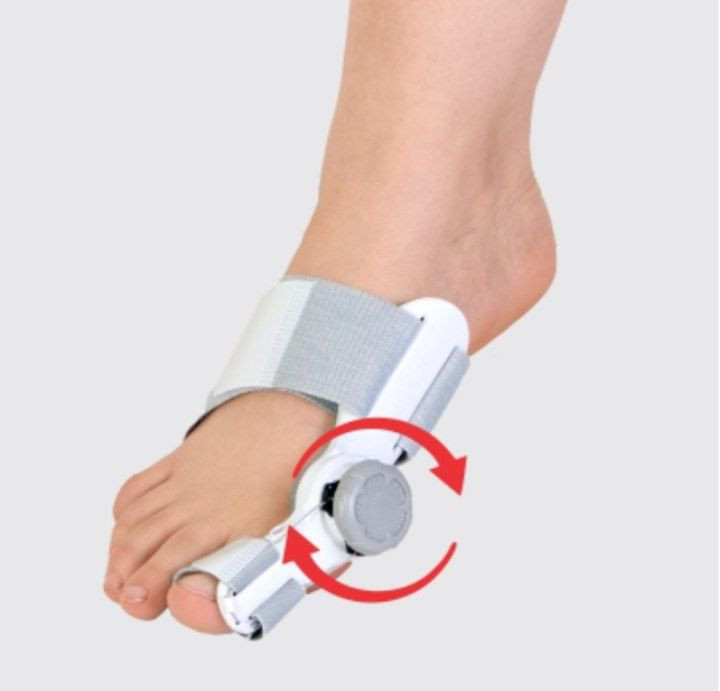 اسپلینت قابل تنظیم هالوکس والگوس طب و صنعت برای کنترل انحراف انگشت شست پا به کار گرفته میشود. شما میتوانید قرقره تعبیه شده در کنار آن را در جهت عقربههای ساعت بچرخانید و انگشت شست خود را در زاویهای حفظ کنید که کاملاً راحت بوده و هیچ دردی را احساس نکنید. بنابراین هرگز نباید انگشت خود را آنقدر تحت فشار قرار دهید که مفصل آن دردناک شود. توجه داشته باشید با این وسیله هرگز نمیتوانید از طریق اعمال نیرو، انحراف انگشت خود را از بین ببرید.همچنین این وسیله در داخل کفش قابل استفاده نمیباشد و شما میتوانید در مواقعی که کفش خود را به پا میکنید از لاانگشتی طبی استفاده نمایید.