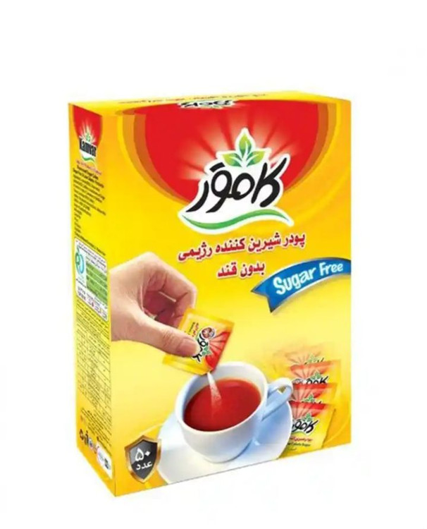 پودر شیرین کننده ساشه ای بدون قند کم کالری کامور بسته 50عددی