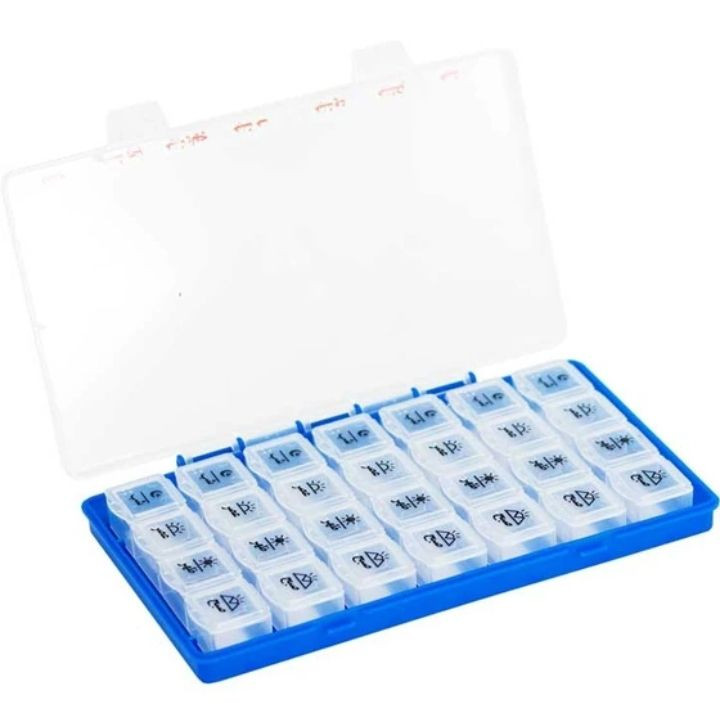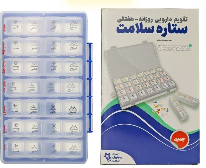 تقویم دارویی روزانه هفتگی احتمال فراموشی مصرف دارو را به صفر میرساند. با طراحی منحصر به فرد و جدید، با قابلیت حمل به صورت تکی ( روزانه ) و یا به صورت کامل ( هفتگی ) با جعبه درب دار که در خانه یا در سفر بسیار کاربردی می باشد. تقویم دارویی روزانه هفتگی دارای 4 قسمت مجزا برای صبح، ظهر، عصر و شب میباشد. این کالا با محفظهای شفاف طراحی شده است و به گونهای طراحی و ساخته شده است که مقاومت بالایی در برابر ضربه از خود نشان دهد و طول عمر بالایی داشته باشد. در ساخت این محصول از مرغوبترین مواد اولیه استفاده شده است.
