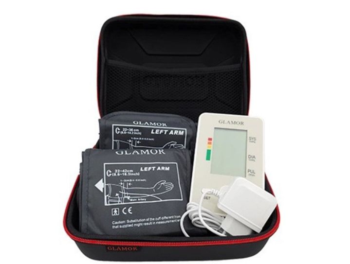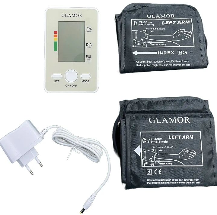 فشارسنج دیجیتال گلامورGlamor DBP-1318 محصولی از برند گلامور است.این دستگاه از روش اسیلومتریک برای اندازه گیری فشارخون بالا(سیستولیک)و پایین(دیاستولیک) و همینطور ضربان قلب برای بزرگسالان استفاده می کند.این دستگاه برای مصارف خانگی و یا کلینیک در نظر گرفته شده است.همه عملکرد های دستگاه به راحتی مورد استفاده قرار می گیرد و مقادیر در یک صفحه نمایش LCD قابل رویت است.این دستگاه هم با باتری و هم با آداپتور امکان سنجش میزان فشار خون و ضربان قلب را دارد.این محصول درLCD نمایشگر خود تاریخ و زمان تست را ثبت می کند.این فشارسنج دارای حافظه است و می تواند تا 60 بار میزان حافظه بیمار را در خود ذخیره کند.گلامور برای این مدل یک کیف چمدانی در نظر گرفته است تا در حمل و نقل و جابه جایی مشکی به وجود نیاید.