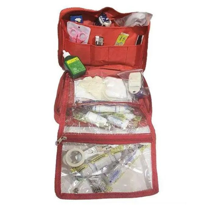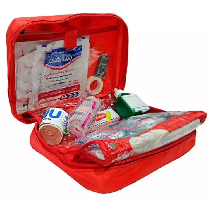 اقلام همراه: چسب زخم،دستکش،گاز استریل،بتادین،باند کشی،باند زخم،پد الکلی،تیغ بیستوری،پنبه،سنجاق قفلی،گاز وازلینه،چسب ضد حساسیت،قیچی