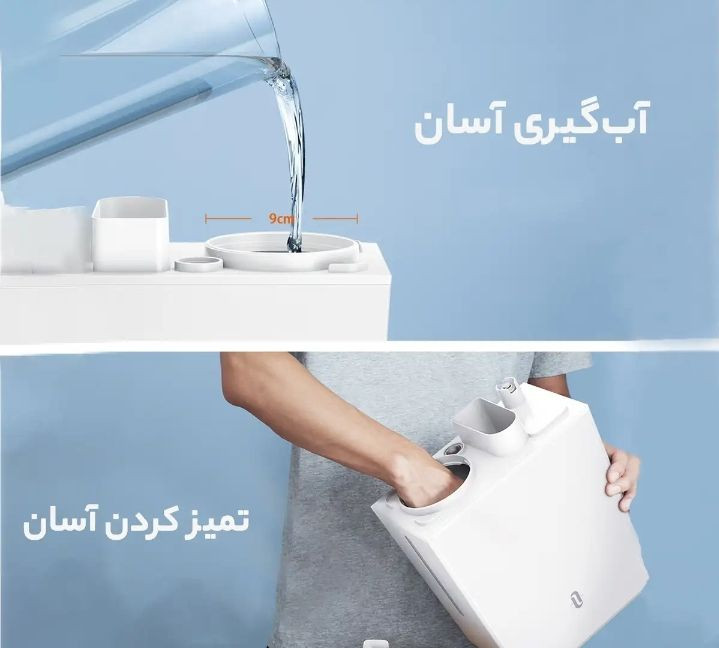 ورودی مخزن آب دستگاه به نحوی است که به راحتی می توانید داخل مخزن را تمیز و جرم گیری کنید و با دستمال مرطوب تمیز کنید.